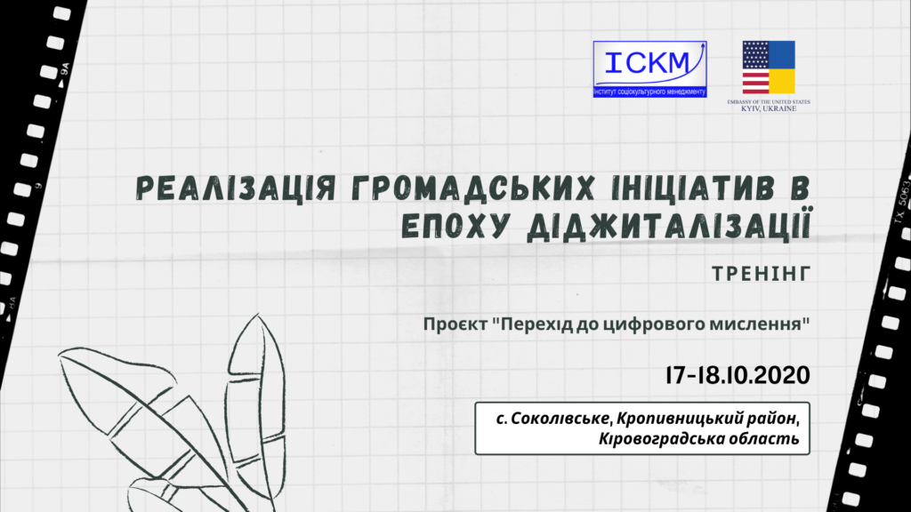 Онлайн життя, робота, спілкування… як робити це ефективно та безпечно навчалися громадські активісти с. Соколівське Кропивницький район Кіровоградської області. 17-18 жовтня 2020 року Інститутом соціокультурного менеджменту проведено другий тренінг «Реалізація громадських ініціатив в епоху діджиталізації» в рамках проєкту «Перехід до цифрового мислення»*. Пропонуємо переглянути – як це було. Більше про навчання https://iscm.org.ua/uk/2020/10/19/roz… *Детальніше про проект … Читати далі Діджиталізація в Кіровоградській області: випуск #2